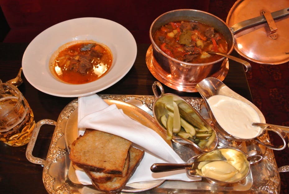 Ungersk gulasch på hjort med crème fraiche och surdegsbröd