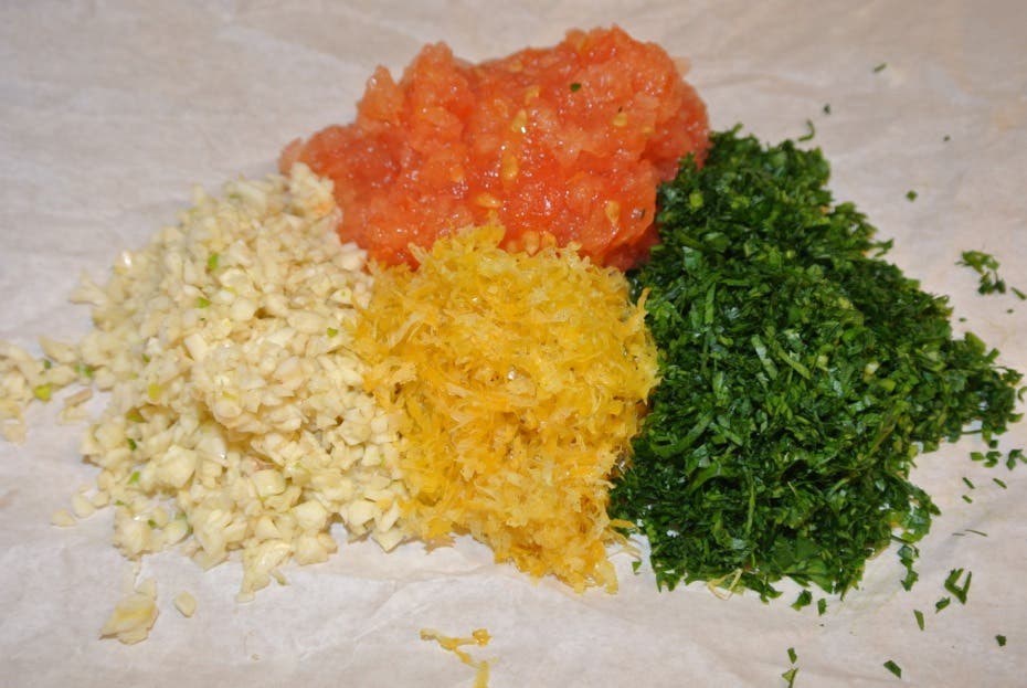 Under en högljudd förevisning av Olga framgick det tydligt att för att få den rätta smaken i soppan skall vitlöken, persiljan och en del av tomaterna samt det rivna citronskalet tillsättas precis innan servering, och jag instämmer helt.