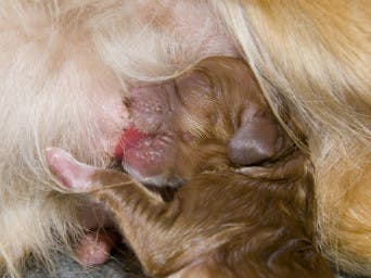 Tiken brukar mycket snart fatta intresse för den lilla valpen. Om inte, kan du ta upp den och gnida den över buken med en handduk för att få i gång andningen. Om du vill avnavla valpen görs det enklast med en rentvättad tumnagel några centimeter från buken. Vill du, kan du också kontrollera att valpen har normal gom, nos och analöppning. Förhoppningsvis sprattlar och piper valpen nu och ska då tillbaka till tiken. Den första så kallade råmjölken är mycket viktig, då den ger antikroppar mot infektioner.