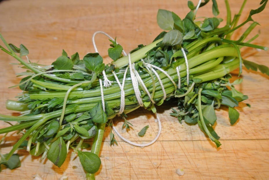 - 1 bouquet garni på persiljestjälkar, timjan, mejram eller oregano
