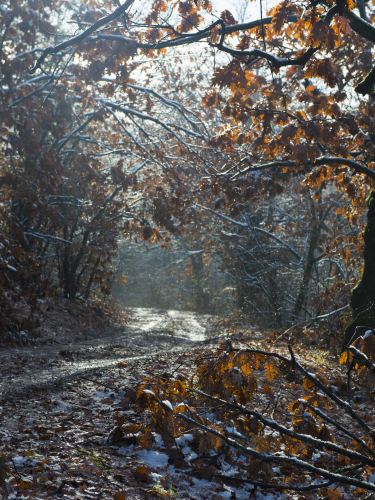 När solen kom fram på morgonen steg temperaturen avsevärt och all snö som klibbat fast i träden börjar smälta. Resultatet blir ett väldigt liv när snö och vatten börjar falla och droppa ner i alla boklöv på marken. Något som i den tysta skogen förefaller som ett oljud. Plötsligt är en av fördelarna med att stå still borta. Chanserna att få höra vildsvinen innan de kommer fram till dig är minimerade.