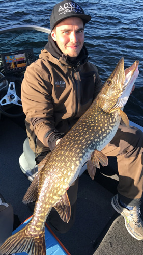 Därefter kom det upp ytterligare några gäddor mellan 3 - 5 kg. Precis innan vi tänkte bege oss hemåt fick Viktor följe av en riktigt fin gädda. Uppskattningsvis mellan 115 och 120 cm, sprängfylld med rom. Dessvärre blev det aldrig något mer än så.