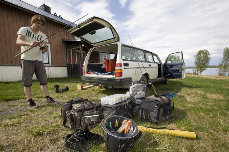 Nicklas kopplar på båten efter sin fullastade Volvo 245:a. Frigången är hög och bilen sväljer mycket utrustning. Som fiskebil uppfyller ekipaget sin funktion med råge. Kvällens fiskeplats är en av många pärlor som Nicklas har koll på i ”Norra Norrlands inland”. Nicklas vill inte att vi nämner några platser vid namn och det är fullt förståeligt då stora gäddor har en förmåga att locka till sig fiskare som man sen får konkurrera om platserna med. Samtidigt berättar han att konkurrensen om fiskeplatserna på gädda är väldigt liten här uppe och det normala är att man kan fiska ensam flera dagar i sträck om man vill det. Nicklas berättar att han ingår i en liten grupp med inbitna gäddfiskekompisar från Arjeplog som hela tiden delar med sig av sina framgångar. På vägen ut plingar det till i Nicklas mobil och sekunden senare får jag se en bild på en gädda på 10,7 kilo som fiskekamraten Viktor Sundkvist tagit tio minuter tidigare någon kilometer från där vi tänker fiska under kvällen.